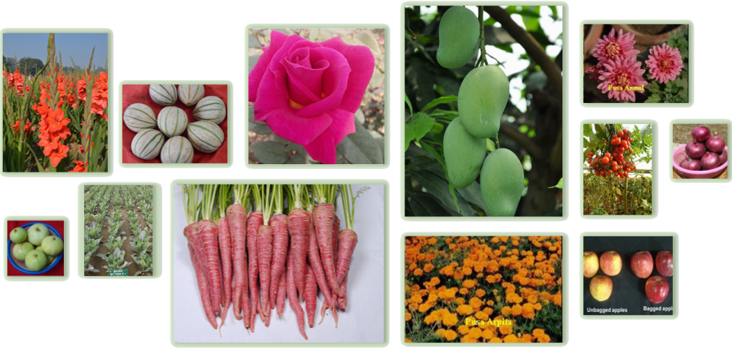 उद्यानिकी विज्ञान के विभाग भारतीय कृषि की वृद्धि, पोषण सुरक्षा, आजीविका सुरक्षा तथा सजीवता में उद्यानिकी फसलों के बढ़ते महत्व को हाल के वर्षों में विशेष मान्यता मिली है। इसी को ध्यान में रखते हुए, भारतीय कृषि अनुसंधान संस्थान ने वर्ष 2012 में उद्यानिकी विज्ञान विद्यालय की स्थापना की, ताकि पारंपरिक एवं जैव-प्रौद्योगिकीय उपकरणों का उपयोग करते हुए सब्ज़ी, फल एवं पुष्प फसलों के सुधार हेतु समन्वित एवं केंद्रित अनुसंधान कार्यक्रम चलाए जा सकें; खुले एवं संरक्षित वातावरण के लिए उत्पादन प्रौद्योगिकियों का विकास किया जा सके; कटाई-पश्चात प्रौद्योगिकी विकल्पों की रूपरेखा तैयार की जा सके तथा विभिन्न प्रौद्योगिकीय विकल्पों का प्रभावी प्रसार कर कृषक समुदाय की समृद्धि सुनिश्चित की जा सके। भारतीय कृषि अनुसंधान संस्थान उद्यानिकी विज्ञान में वैज्ञानिक अनुसंधान एवं उसके व्यावसायिक अनुप्रयोग का अग्रदूत रहा है। इस संस्थान द्वारा विकसित किस्में/संकर पूरे देश में व्यापक रूप से अपनाई गई हैं तथा हाल के वर्षों में भारत में निजी सब्ज़ी बीज उद्योग के विकास का आधार भी बनी हैं। YVMV प्रतिरोधी भिंडी ‘पूसा सावनी’, टमाटर ‘पूसा रूबी’, बैंगन ‘पूसा क्रांति’, लौकी ‘पूसा नवीन’, फूलगोभी ‘पूसा स्नोबॉल K-1’, प्याज़ ‘पूसा रेड’ एवं गाजर ‘पूसा रुधिरा’ ने देश में सब्ज़ी उत्पादन में क्रांति ला दी है। उच्च सघनता रोपण हेतु उपयुक्त, नियमित फल देने वाली आम की किस्में ‘मल्लिका’ एवं ‘अमरपाली’ पूरे देश में फैली हैं और आज भी अत्यधिक मांग में हैं। ‘पूसा नारंगी गेंदा’ एवं ‘पूसा बसंती गेंदा’ ने देशभर में गेंदा की खेती को लोकप्रिय बनाया। कम लागत वाला ‘पूसा शून्य ऊर्जा शीत कक्ष’ शीघ्र नष्ट होने वाली फसलों के भंडारण जीवन को बढ़ाकर किसानों को बेहतर मूल्य प्राप्त करने में सहायक सिद्ध हुआ है।
